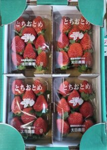 当日は社長の挨拶に続いて、南相馬市近郊の新鮮な野菜やいちごの競売行われました。